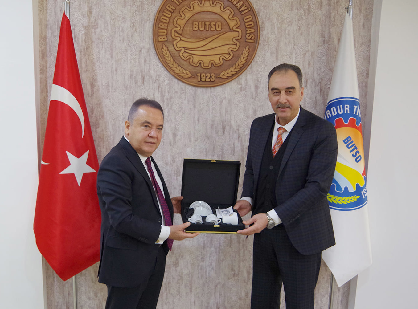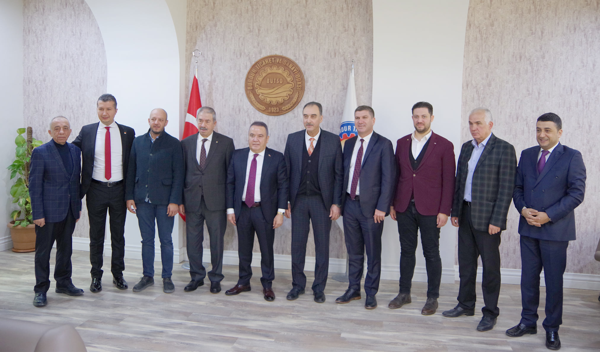 Antalya Büyükşehir Belediye Başkanı Muhittin Böcek, Burdur Belediye Başkanı Ali Orkun Ercengiz ve beraberindeki heyet Yönetim Kurulu Başkanımız Yusuf Keyik’i makamında ziyaret etti.