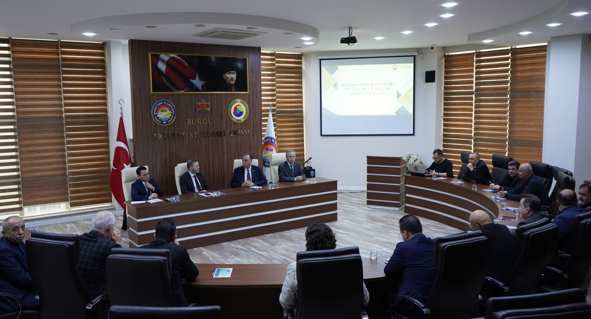 • Programda Burdur ile Azerbaycan arasındaki ticari ilişkilerin geliştirilmesi, karşılıklı yatırım fırsatlarının oluşturulması ve iş birliği imkânları ele alınırken Meclis Salonumuzda üyelerimizin katılımıyla Azerbaycan’daki yatırım olanaklarına yönelik sunumlar yapıldı.