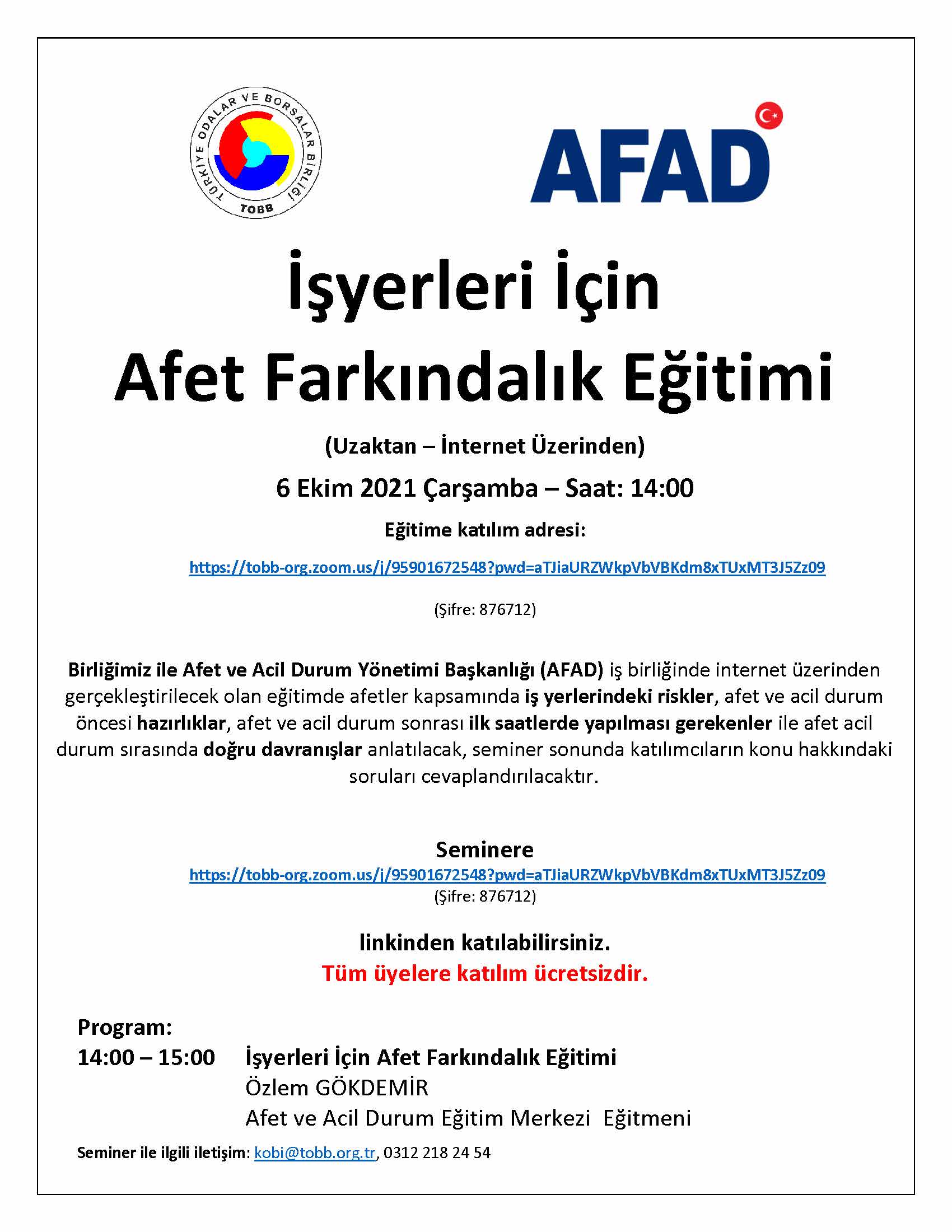 DESCRIPTION:Sayın Üyemiz,\NBurdur Ticaret İl Müdürlüğü tarafından Odamıza intikal eden, Esnaf, Sanatkarlar ve Kooperatifçilik Genel Müdürlüğünün 17.03.2026 tarihli ve E-34941867-770-00120139800 sayılı yazısında;\NTicaret Bakanlığı Esnaf, Sanatkârlar ve Kooperatifçilik Genel Müdürlüğünün yazısında; KOOP-DES Programı kapsamında kooperatif ve üst kuruluşlarının üretim ve istihdama katkı sağlayacak projelerinin desteklenmesi, faaliyetlerinde etkinlik ve verimliliğin artırılması ve proje hazırlama kapasitelerinin geliştirilmesi amacıyla “KOOP-DES Başvuru Süreci ve Proje Hazırlığı Eğitimi” düzenleneceği bildirilmiştir.\NSöz konusu eğitim 26 Mart 2026 Perşembe günü saat 14:30’da çevrim içi olarak gerçekleştirilecek olup eğitime ilişkin bağlantı bilgilerine aşağıda yer verilmektedir.\NSaygılarımızla\NEğitim Katılım Bilgileri:Konu: Koop-Des Başvuru Süreci ve Proje Hazırlığı EğitimiZaman: 26 Mart 2026 14:30 İstanbulZoom Toplantısına Katılım Linki:https://zoom.us/j/96729158568?pwd=SvnoqQ4ie3aPbkVB9KBKgpa37kiXcR.1Toplantı Kimliği: 967 2915 8568Parola: 088972